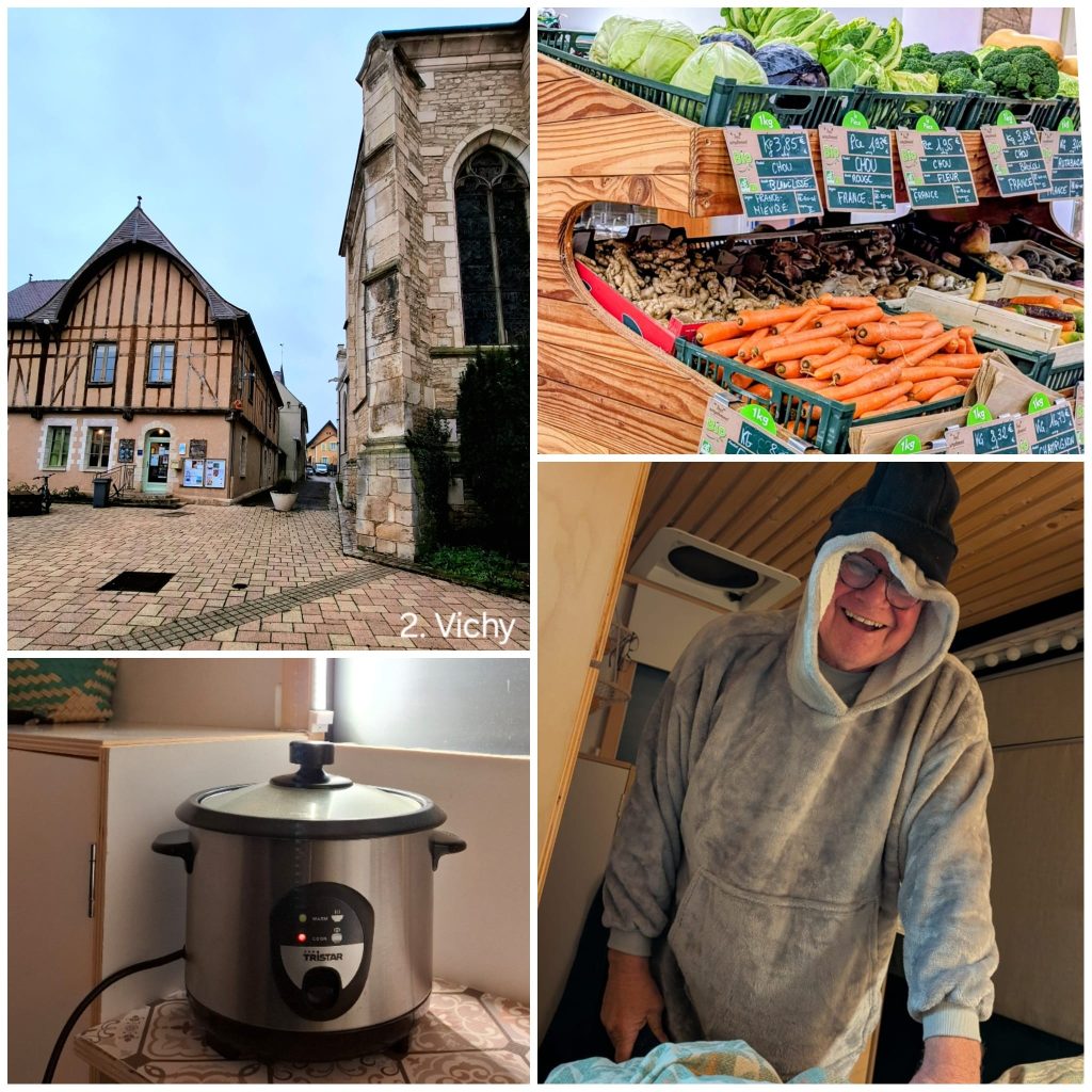 Na het ontbijt zetten we koers richting Vichy. In plaats van de tolweg kozen we bewust voor een binnenroute. Deze beslissing pakte goed uit: de weg voerde ons door dicht bosgebied en langs diverse kleine, karaktervolle dorpen. Veel van deze plekken hadden een bijna historisch, authentiek uiterlijk. Het gaf de rit duidelijk meer charme dan de snelle doorgaande route.