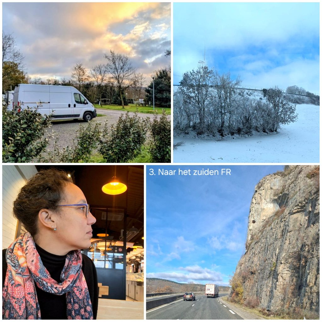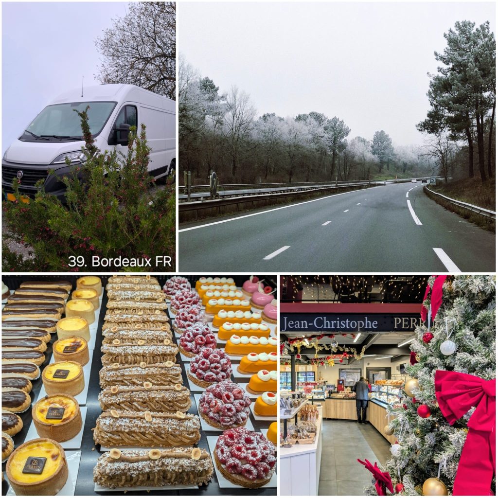 Onze laatste paar dagen door Frankrijk op weg naar huis. Het weer is echt winters onderweg. Er is geen sneeuw maar het is wel ijzig en alle bomen zitten vol met rijp wat een magisch beeld geeft. Ook onze rit door Frankrijk proberen we nog het vakantiegevoel vast te houden. Zo bezoeken we typisch Franse bakkertjes met croissants zoals ze ooit bedacht en bedoeld zijn en allerlei andere lekkere broodjes en chocolaatjes.