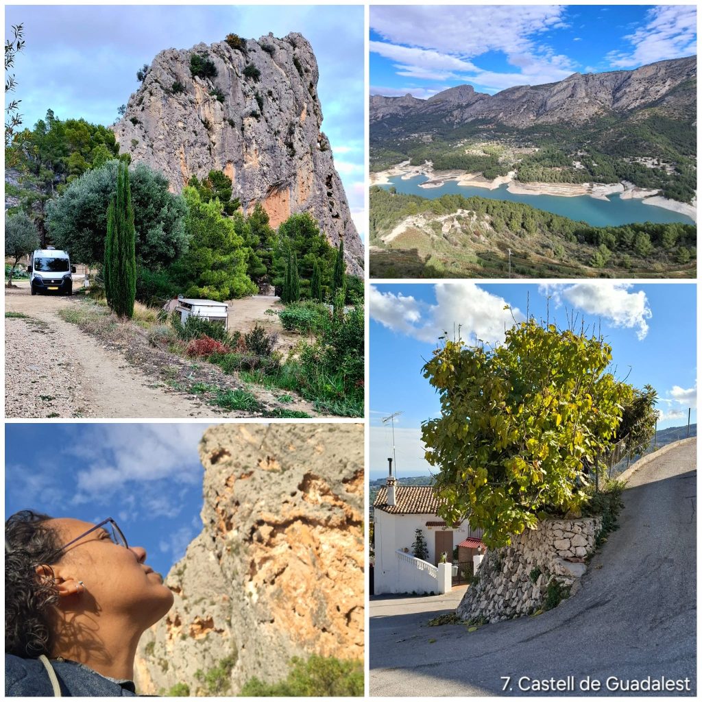De camping ligt prachtig aan de voet van een hoge rotswand waar klimmers actief zijn. En wat het nog bijzonderder maakt: bovenop de berg ligt het oude middeleeuwse kasteel van El Castell de Guadalest. Dit kleine, hooggelegen dorp staat bekend om zijn smalle straatjes, indrukwekkende uitzicht over het turquoise stuwmeer en zijn rustige, authentieke sfeer buiten de toeristische piekmomenten. Morgen willen we het kasteel en het dorp verder gaan verkennen.