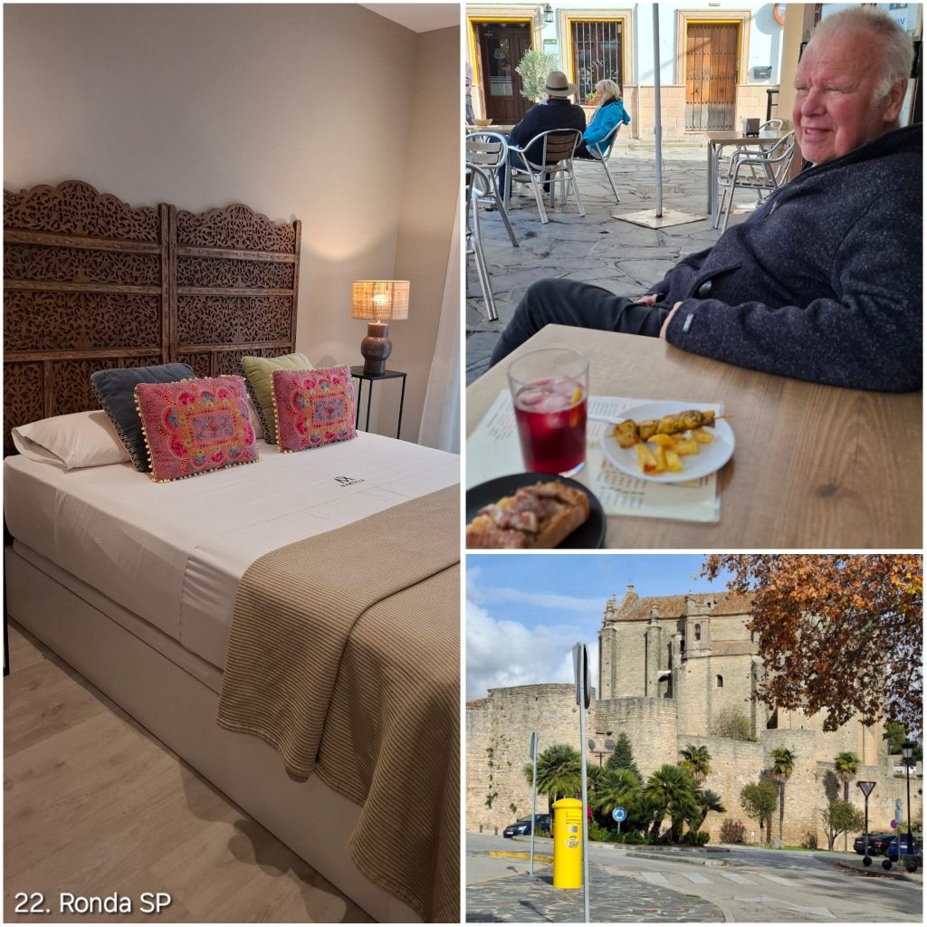 Omdat we toe waren aan wat comfort — en vooral aan een normale douche die niet na drie minuten afslaat — besloten we een hotel te boeken aan de rand van de stad. Vanaf daar konden we eenvoudig de bus nemen, die ons in ongeveer vijf minuten naar het centrum van Ronda bracht. Een fijne en ontspannen manier om deze stad te bezoeken zonder gedoe met parkeren.