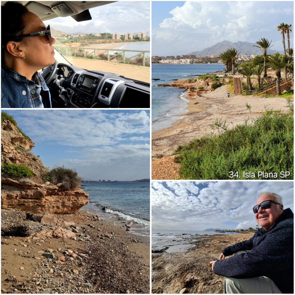 Na een weersupdate van onze Spaanse camperplekeigenaar — met verhalen over zware hagelbuien in Málaga — waren we vooral blij dat we dat gebied achter ons hadden gelaten en noordelijker waren opgetrokken. Ondanks sombere weersvoorspellingen bleef de regen vandaag grotendeels uit. Sterker nog: we reden richting de kust en konden onverwacht genieten van een rustige middag aan zee, mét zon en zonnebril. Een zeldzaam moment deze reis, waarin we echt even aan het strand zaten tussen locals en andere reizigers die hetzelfde idee hadden: ontspannen, vissen en genieten van het uitzicht.