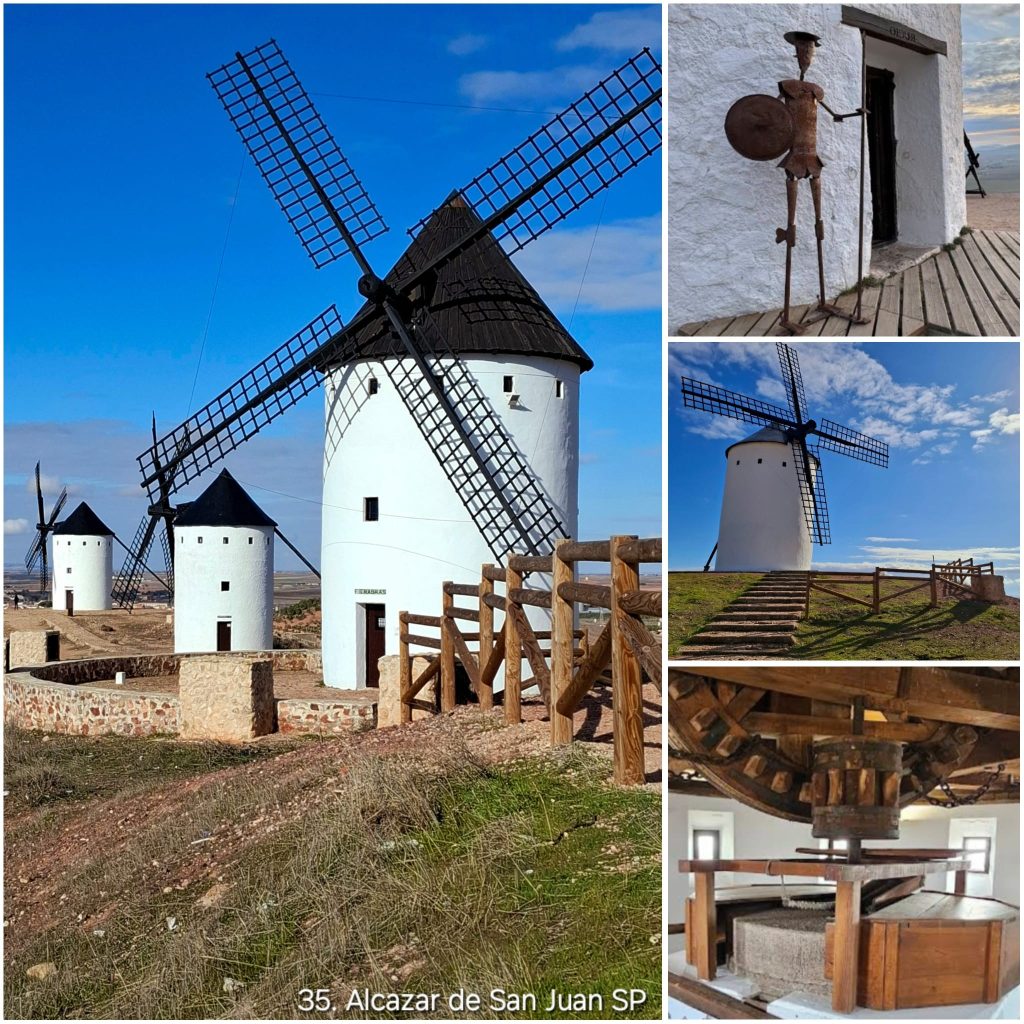 Onderweg kiezen we bewust een strategische tussenstop halverwege Burgos en de kust: Alcázar de San Juan. Deze plaats ligt in het hart van La Mancha, het gebied dat onlosmakelijk verbonden is met Don Quichot en zijn beroemde strijd tegen de windmolens. Niet voor niets wordt deze regio ook wel de ‘Spaanse Zaanse Schans’ genoemd. In tegenstelling tot de drukte in Nederland waren wij hier bijna alleen, wat alle ruimte gaf om rustig foto’s te maken bij de iconische molens.
