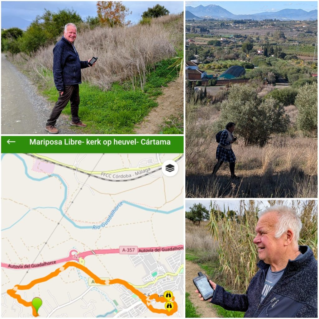Regelmatig maken we wandelingen met behulp van GPS. Voor deze dag zochten we via Wikiloc een geschikte route uit: niet te lang, maar wel actief. Uiteindelijk kwam dat neer op een wandeling van ongeveer tien kilometer. Dit soort routes loopt niet altijd over verharde wegen, waardoor je soms goed moet opletten waar het pad verdergaat en waar je de berg op moet.