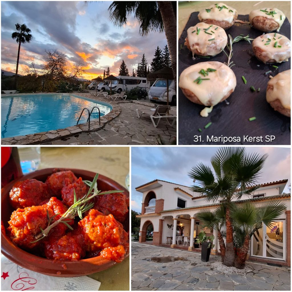 Op onze camperplek Mariposa Libre kregen we een uitnodiging om samen met andere camperaars Kerstmiddag te vieren. Het idee was een gezamenlijke tapasmiddag aan lange tafels. De groep bestond vooral uit Nederlanders, aangevuld met één Engels stel. Wij zaten naast hen, wat resulteerde in een gesprek over kersttradities in beide landen.
