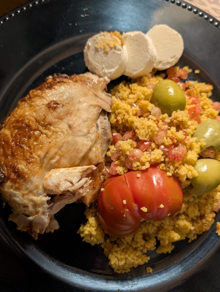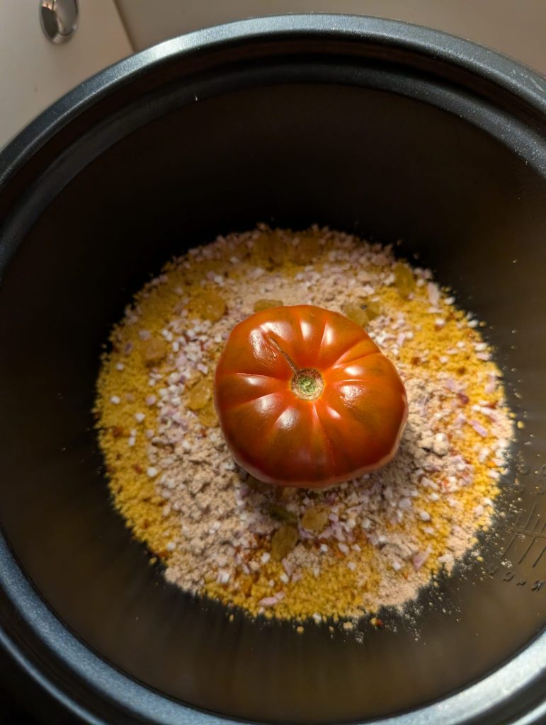 - Leg de ingesneden tomaat in het midden van de couscous.